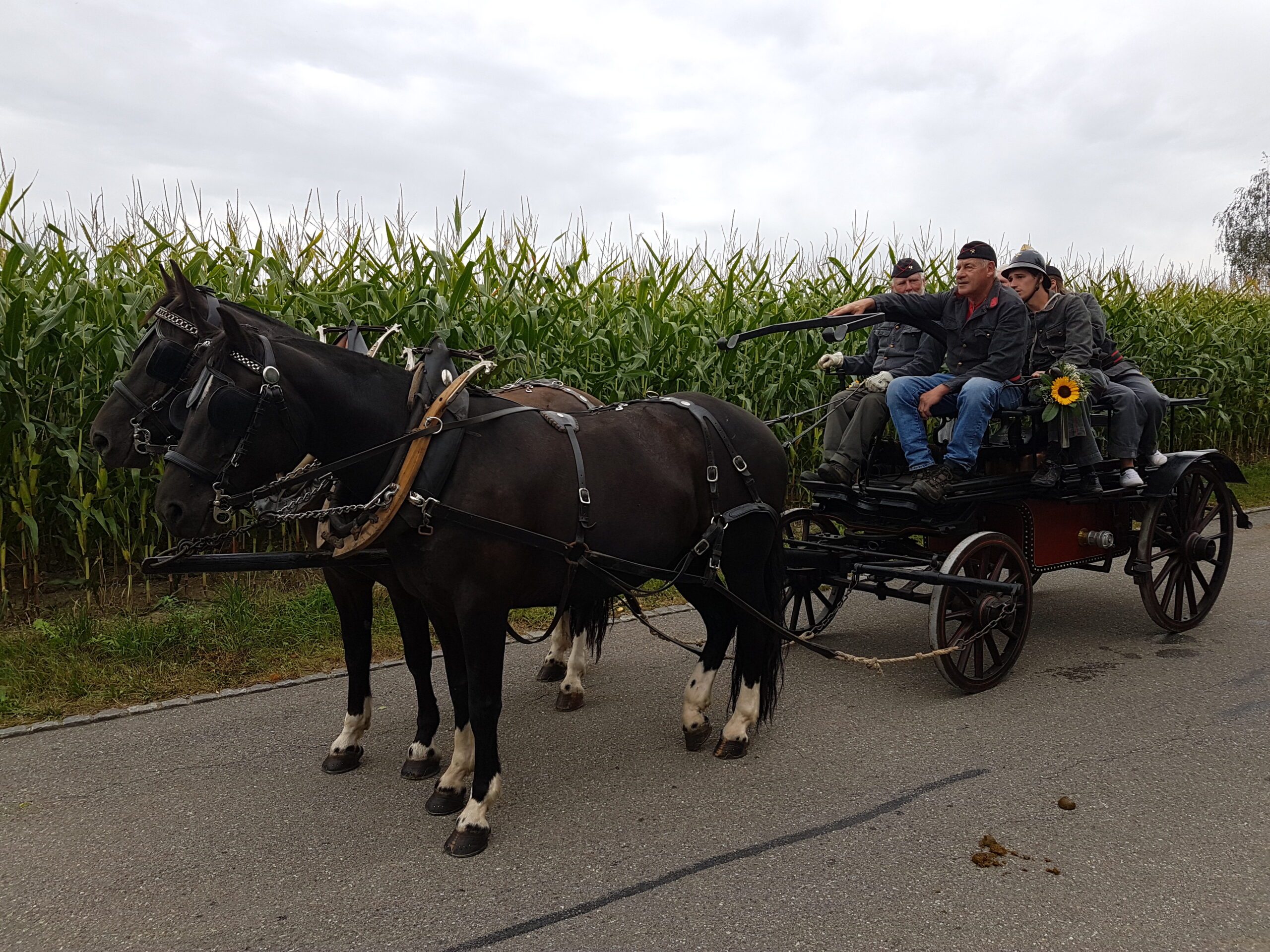 Die Schlauchwagen waren dafür da, die Wassertransportschläuche platzsparend aufzurollen und schnell und unkompliziert an den Einsatzort zu transportieren.