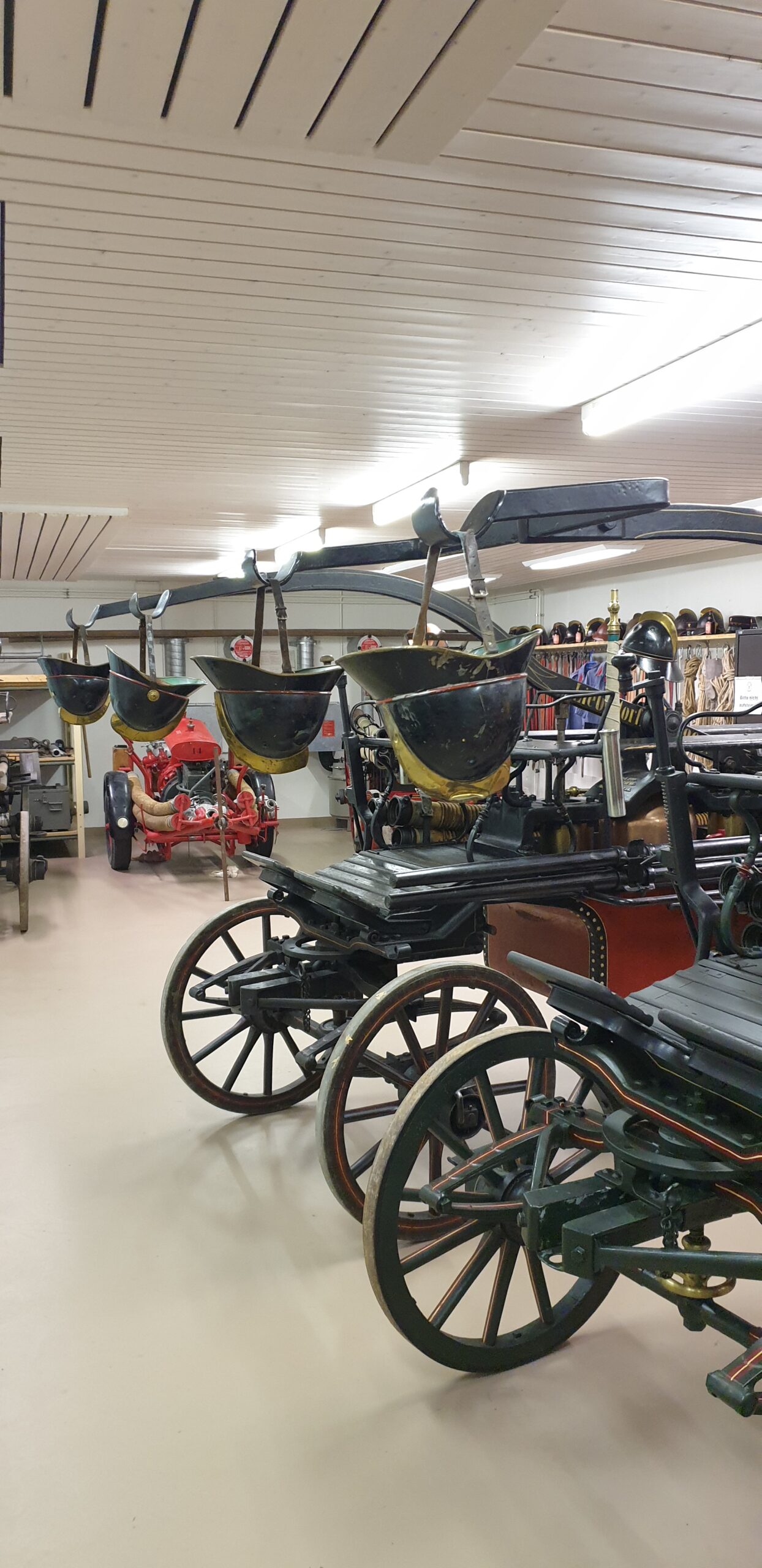 Handdruckspritzen sind, wie es der Name schon sagt, Wasserspritzen bei denen der Druck von Hand erzeugt wird. Sie sind auf Rädern und wurden von Pferden gezogen. In der damaligen Zeit waren diese Feuerwehrgeräte eine technische Revolution. Man musste nicht mehr von Hand mit Eimern nahe am Feuer arbeiten, sondern konnte von weiter weg direkt und natürlich auch effizienter löschen. Das Arbeiten mit diesem Gerät, sprich das Pumpen erforderte allerdings viel Muskelkraft und war sehr schweisstreibend.