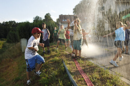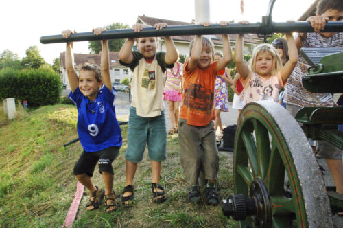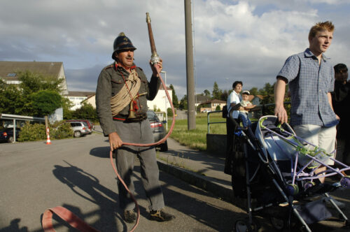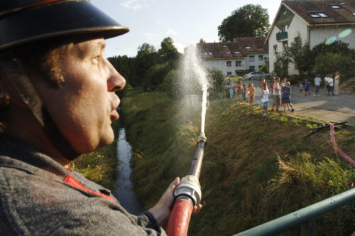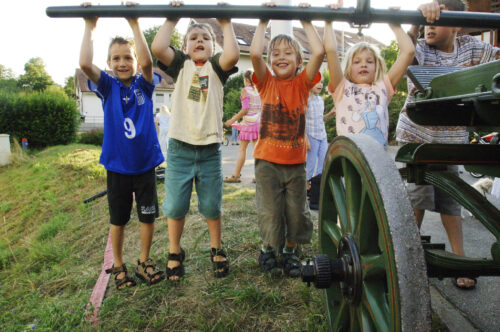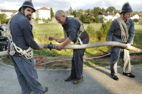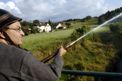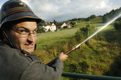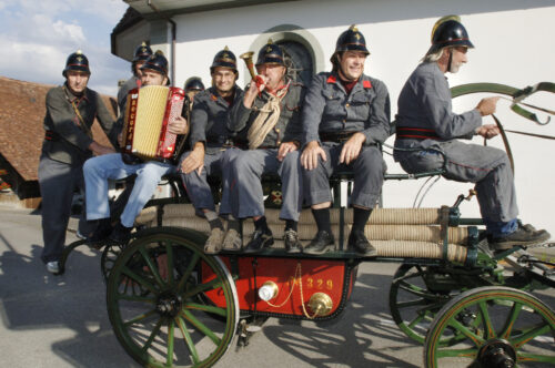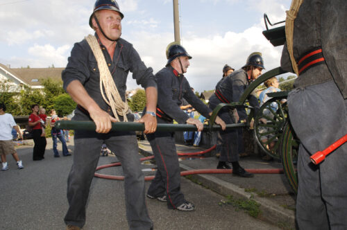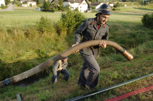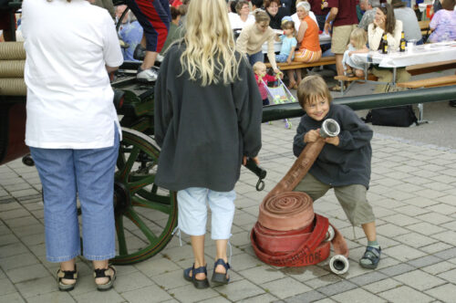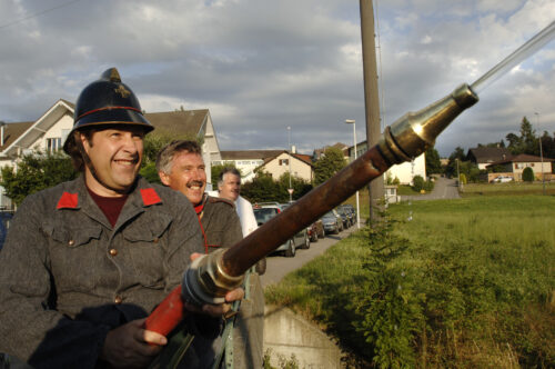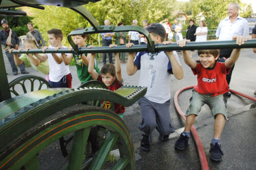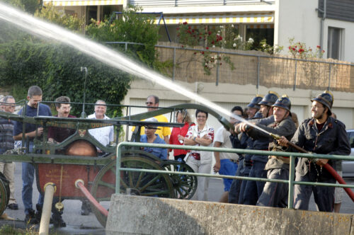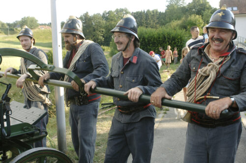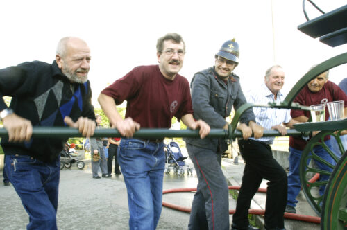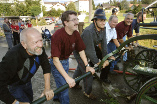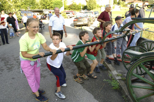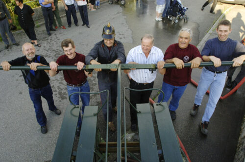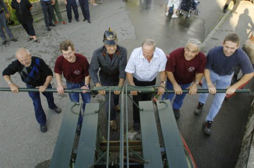 VFDL weiht am Pumpifescht 2005 die restaurierte Handdruckspritze der Gemeinde Guschelmuth ein.