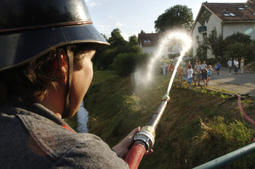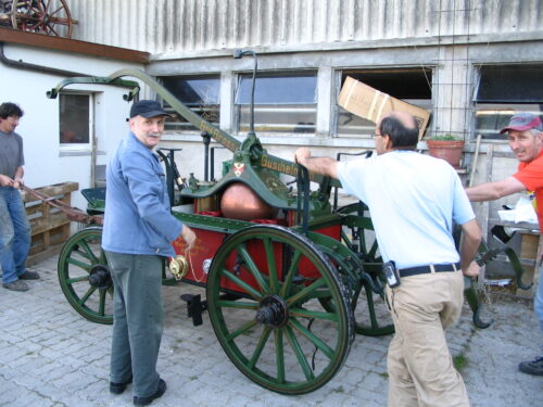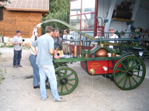 VFDL weiht am Pumpifescht 2005 die restaurierte Handdruckspritze der Gemeinde Guschelmuth ein.