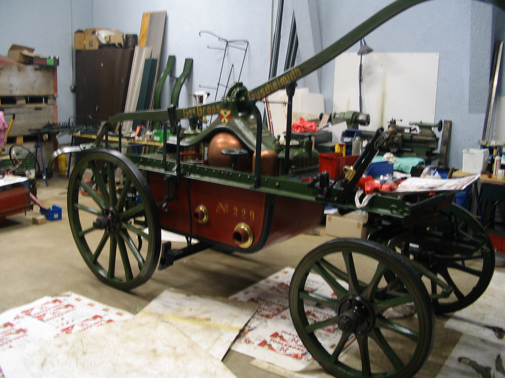 Die Schlauchwagen waren dafür da, die Wassertransportschläuche platzsparend aufzurollen und schnell und unkompliziert an den Einsatzort zu transportieren.