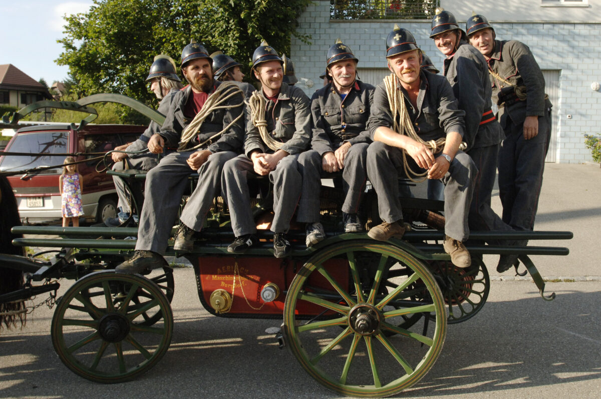 VFDL weiht am Pumpifescht 2005 die restaurierte Handdruckspritze der Gemeinde Guschelmuth ein.